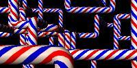 The pipes can be done in solid colors or with a texture. The default texture is a red and white candy cane pattern, but you can also choose a texture. For example I created the red, white and blue barberpoll pattern below. When the texture is inserted in 3D Pipes the screen saver produces what you see at the right.