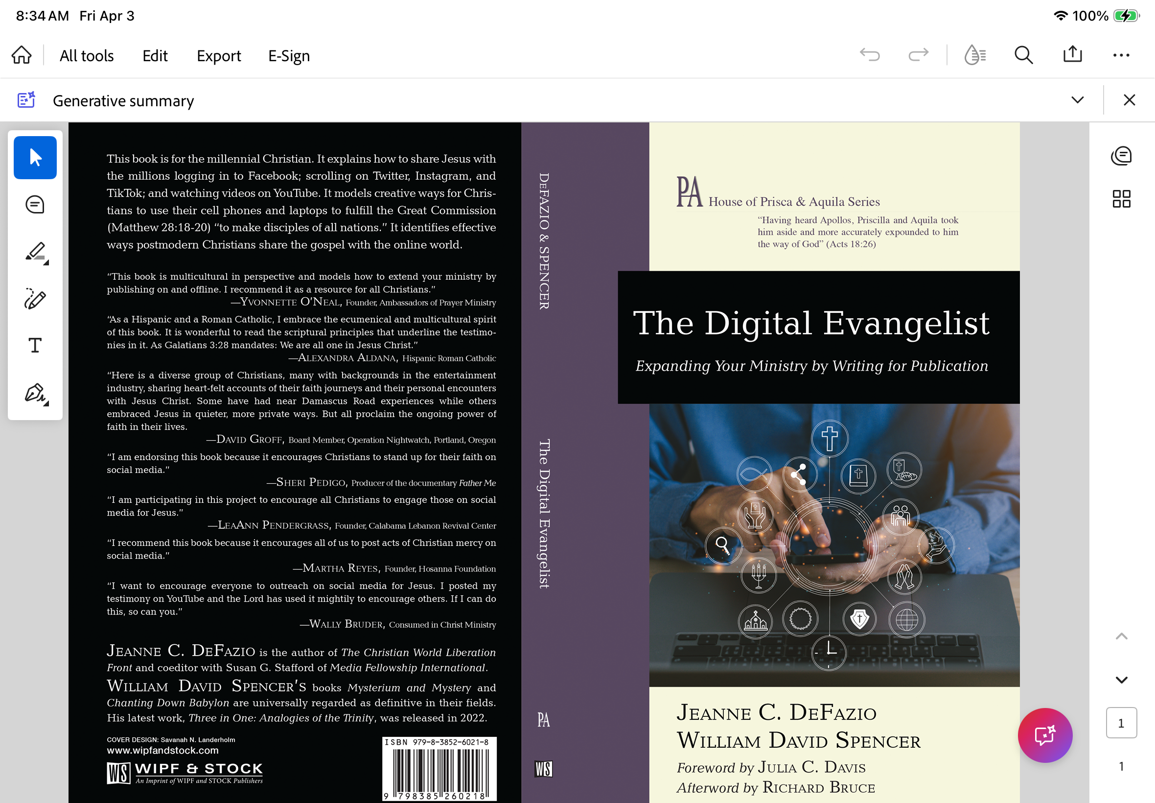 I was asked to participate in a seminar entitled The Digital Evangelist with professors, writers,and others who will be featured in a book also entitled The Digital Evangelist. Click this link to see and hear my contribution. The book The Digital Evangelist includes two contributions by me.